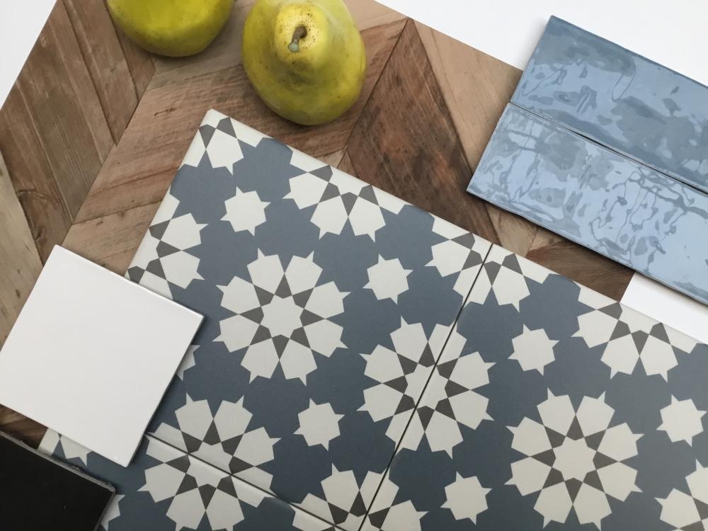 LA VILLETTE BENOIT BLEU + ATELIER 10x10 BLANC DE LIN & NOIR GLOSSY + ATELIER 6.2X25 BLEU LUMIERE GLOSSY